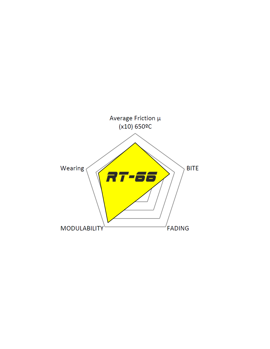 Dank ihrer hohen Temperaturbeständigkeit bis 700 °C bleiben die RT-66 Beläge auch unter extremer Belastung fade-frei und liefern jederzeit konstante Leistung. Die Einbremsphase ist einfach und schnell abgeschlossen, sodass die Beläge rasch ihre volle Performance entfalten. Motorsporttypische Geräusche können auftreten – ein Zeichen ihrer kompromisslosen Renncharakteristik.
