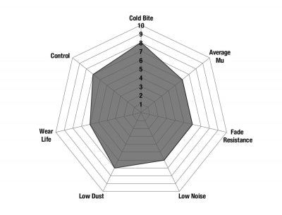 The 100% environmentally friendly friction material blend, which no longer contains sulfides, among other things, now virtually completely eliminates brake flutter caused by pads. The Ultimax2™ pad compound is now free of metallic components, making it even gentler on the brake disc. Like all EBC automotive brake pads, all EBC Blackstuff Ultimax2™ brake pads feature a break-in coating, beveled edges, a heat groove, and a powder coating.